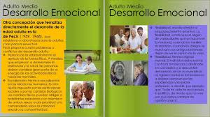La edad adulta intermedia va desde los 30/40- 50/60 años aproximadamente y representa a personas que ya, por lo general, tienen hijos y sus padres ya se encuentran en una edad avanzada. Erickson la denomina etapa de la crisis de productividad vs. el estancamiento Estas características refieren al encuentro del equilibrio e integración de los conflictos que se tuvieron antes. Con la llegada de la adultez media se empiezan a generar cambios importantes en las personas, en esta etapa los papeles personales y laborales son interdependientes los cuales se ven regidos por la sociedad y las oportunidades que estas les dan a cada persona. Debido a esto aumentan las responsabilidades y papeles exigentes, por lo tanto, esta etapa puede ser considerada estresante. También, es considerada una etapa de autorrealización y productividad, ya que se asciende profesionalmente y la persona está en planes de formar una familia o ya la tiene. Las personas suelen mirar lo que han vivido hasta el momento y lo que les queda por vivir, considerando esta etapa como una época para replantear metas y aspiraciones y así aprovechar el tiempo que le queda por vivir. Asimismo los adultos tienen la preocupación de querer guiar y encaminar a las futuras generaciones y de tal manera poder mantenerse, sintiendo así que están dejando un legado. En esta etapa, la persona evidencia diversos cambios en su persona que influyen en su estabilidad y desarrollo emocional: Comienza a evidenciarse el proceso de envejecimiento. Se ven presente déficits físicos, cognitivos, psicomotores, en sexualidad y funcionamiento reproductor. Cambios emocionales por la menopausia o andropausia. Preocupación por casarse (reloj social), tener un trabajo estable, ser el soporte de la familia (más en hombres por rol social) y por tensiones en el trabajo (estrés).